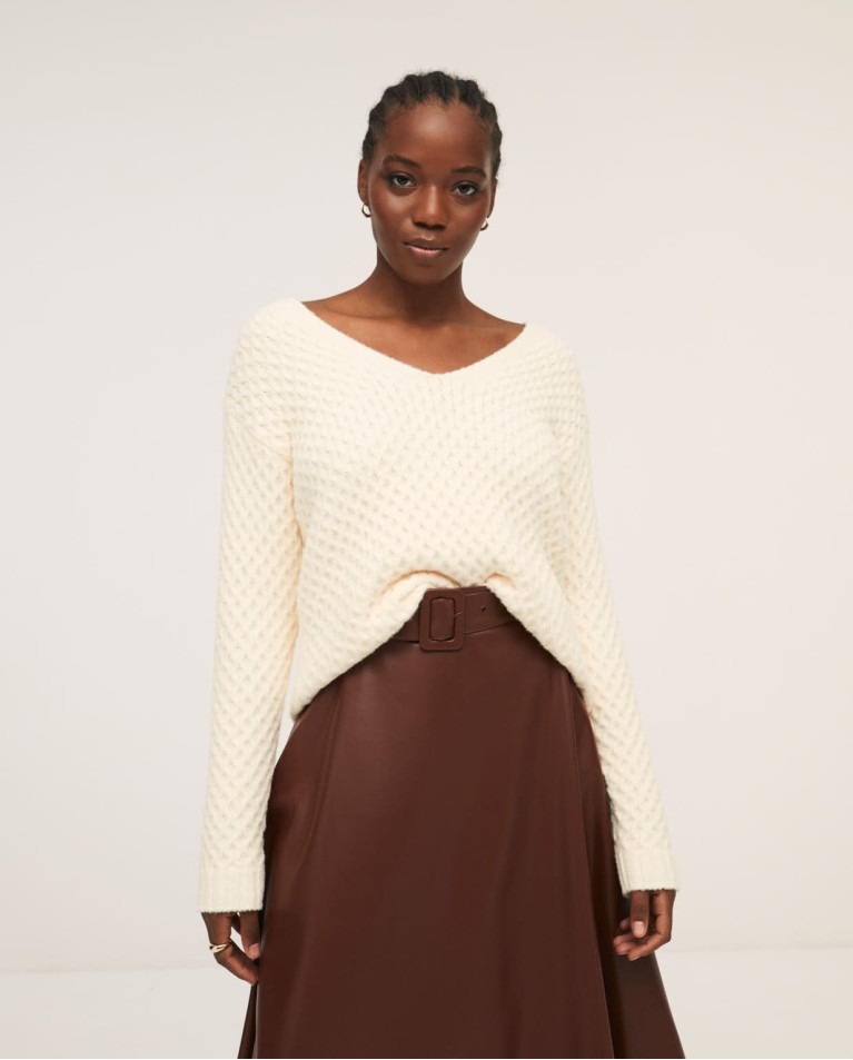 / Jersey de punto cuello pico. estructura ochos Crudo T.S